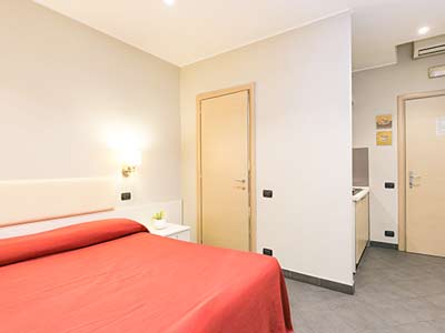 Le camere offrono: Frigorifero, Cassetta di sicurezza elettronica con codice memorizzabile, TV, Wi-Fi gratuito, Climatizzazione autonoma, Bagno privato con box doccia, Set bagno di cortesia, Asciugacapelli, Scrivania, Angolo cottura attrezzato, Divano letto singolo